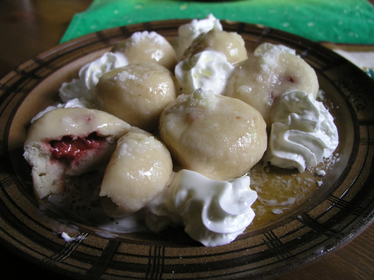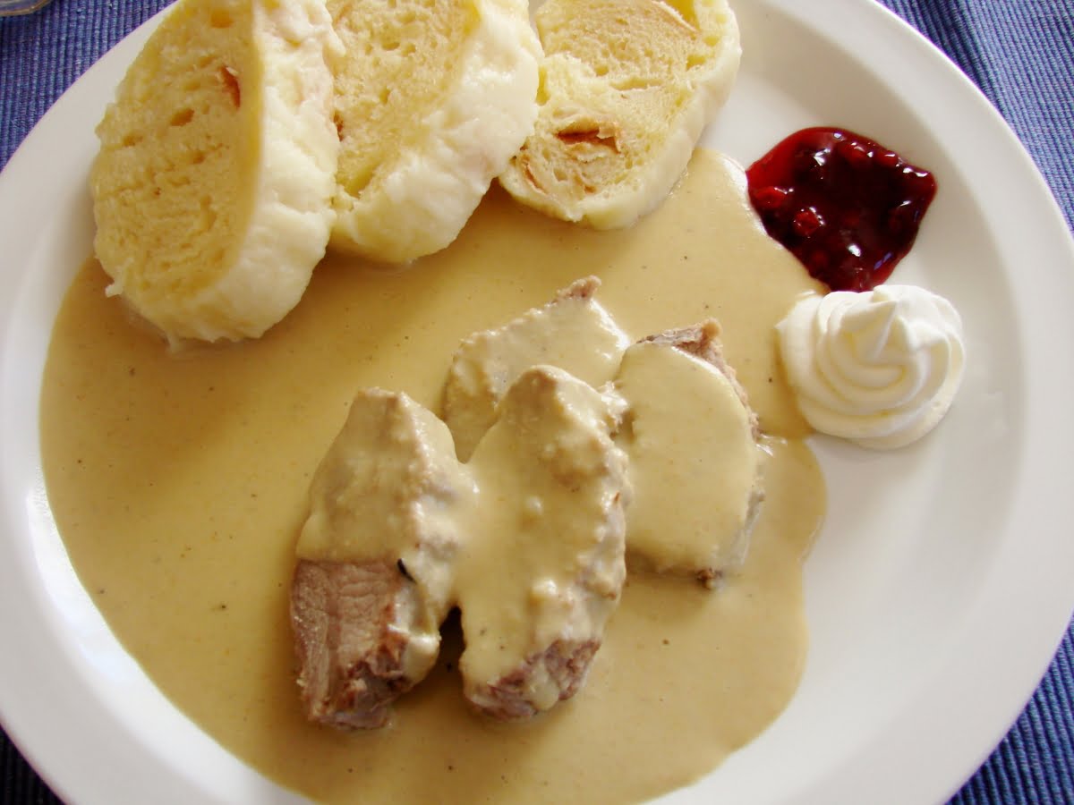 It’s a simple dumpling of white dough. The Czech version includes baking powder and rises slightly. It’s plain and simple, and it’s a belly stretcher. Still, no real Czech meal is complete without it!