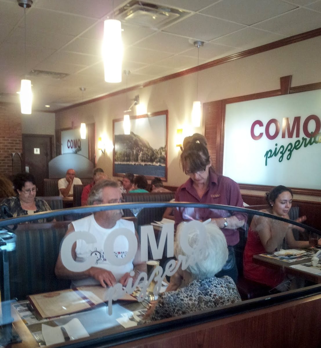 Ô, spectacle olfactif brillant, grandiose! Ô, miracle incommensurable de la merveille mutante qu’est la bouffe américano-italienne! La pizza de chez Como est toujours aussi dégoulinante de gras coulant du fromage, pleine de sauce tomate trop sucrée, emprisonnée dans une pâte qui ressemble plus à une tarte qu’à une pâte à pizza!