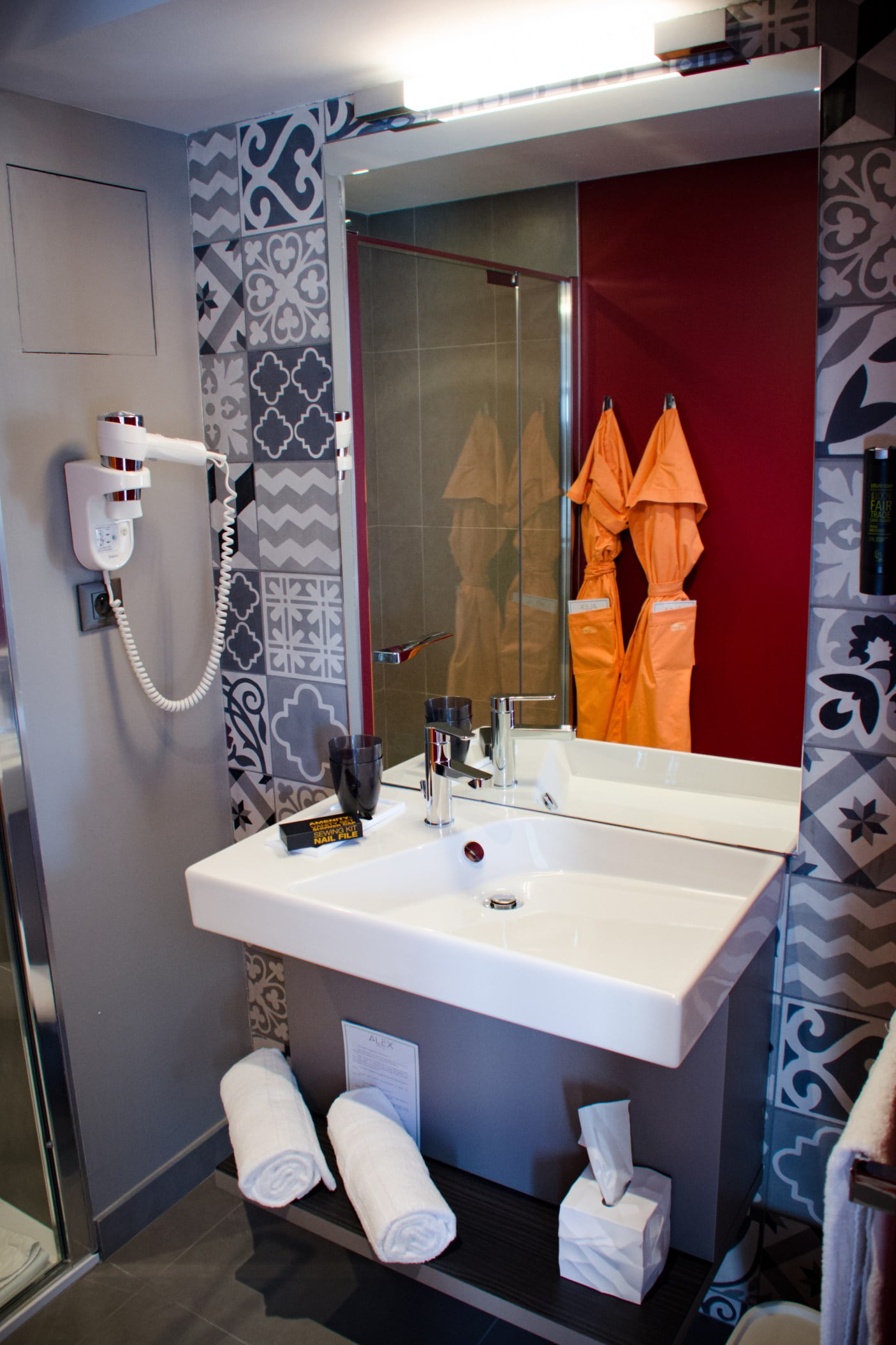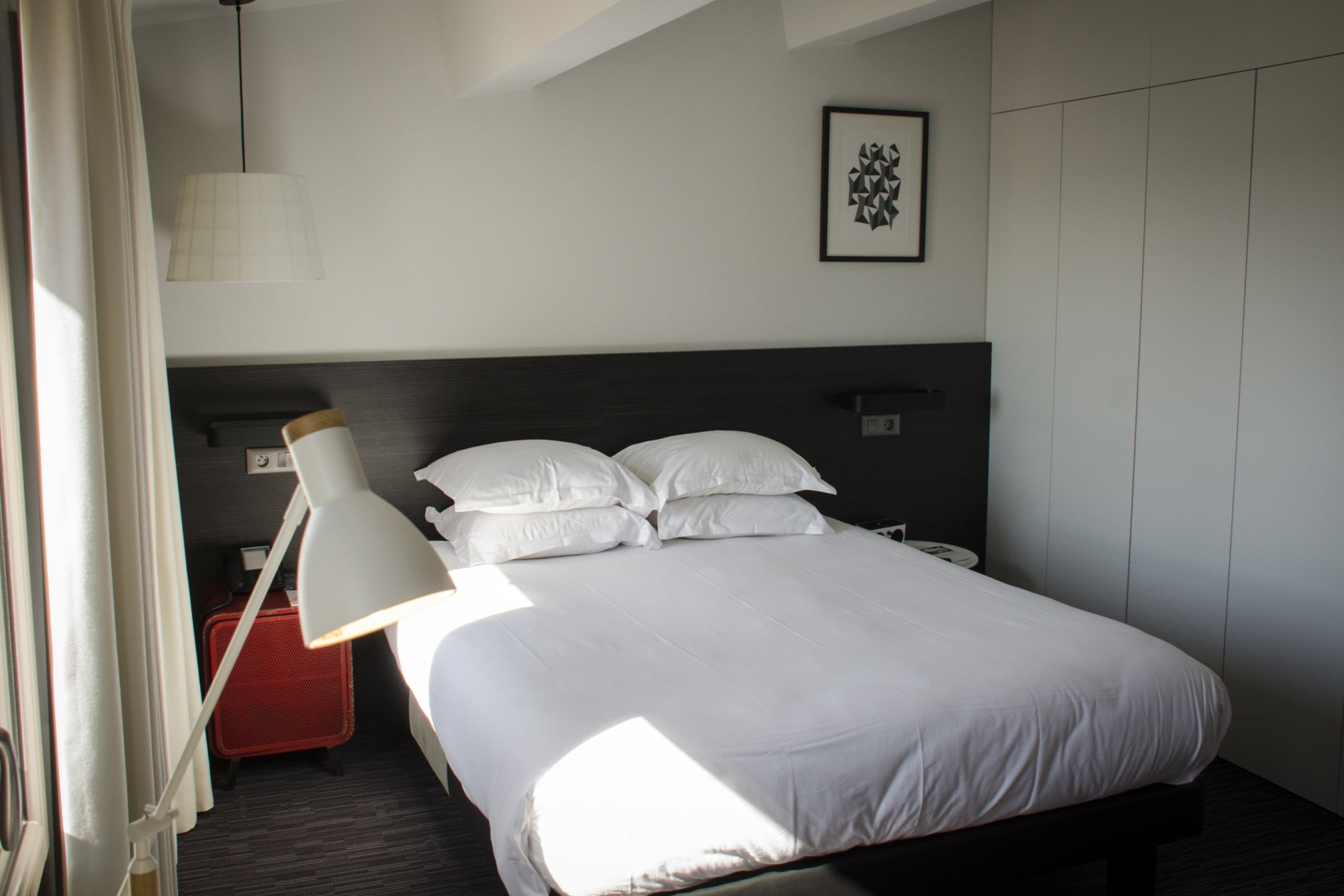 La chambre elle-même est relativement petite, quoique décorée avec goût. Il n’y a rien de monotone à l’Alex Hôtel, puisque tout est design et que les murs ont des couleurs différentes au gré des sections de l’hôtel. Rouge, vert, bleu: ça réveille les sens!