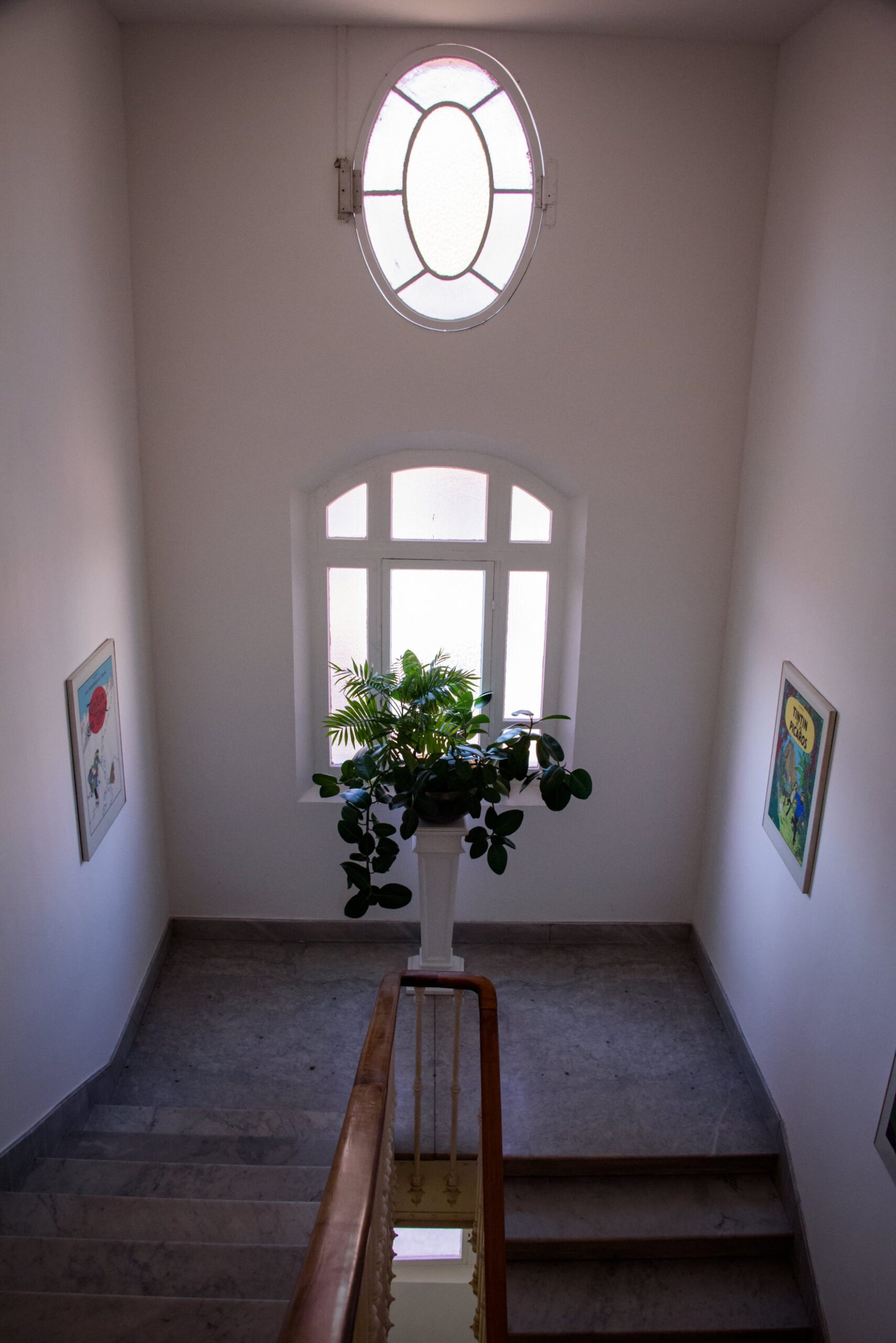 Même l’ascenseur est surprenant: en son et en images, passer du rez-de-chaussée à un étage supérieur est accompagné d’une expérience évoquant le décollage d’une navette spatiale. Il s’agit d’une œuvre de l’artiste Ultra Violet.