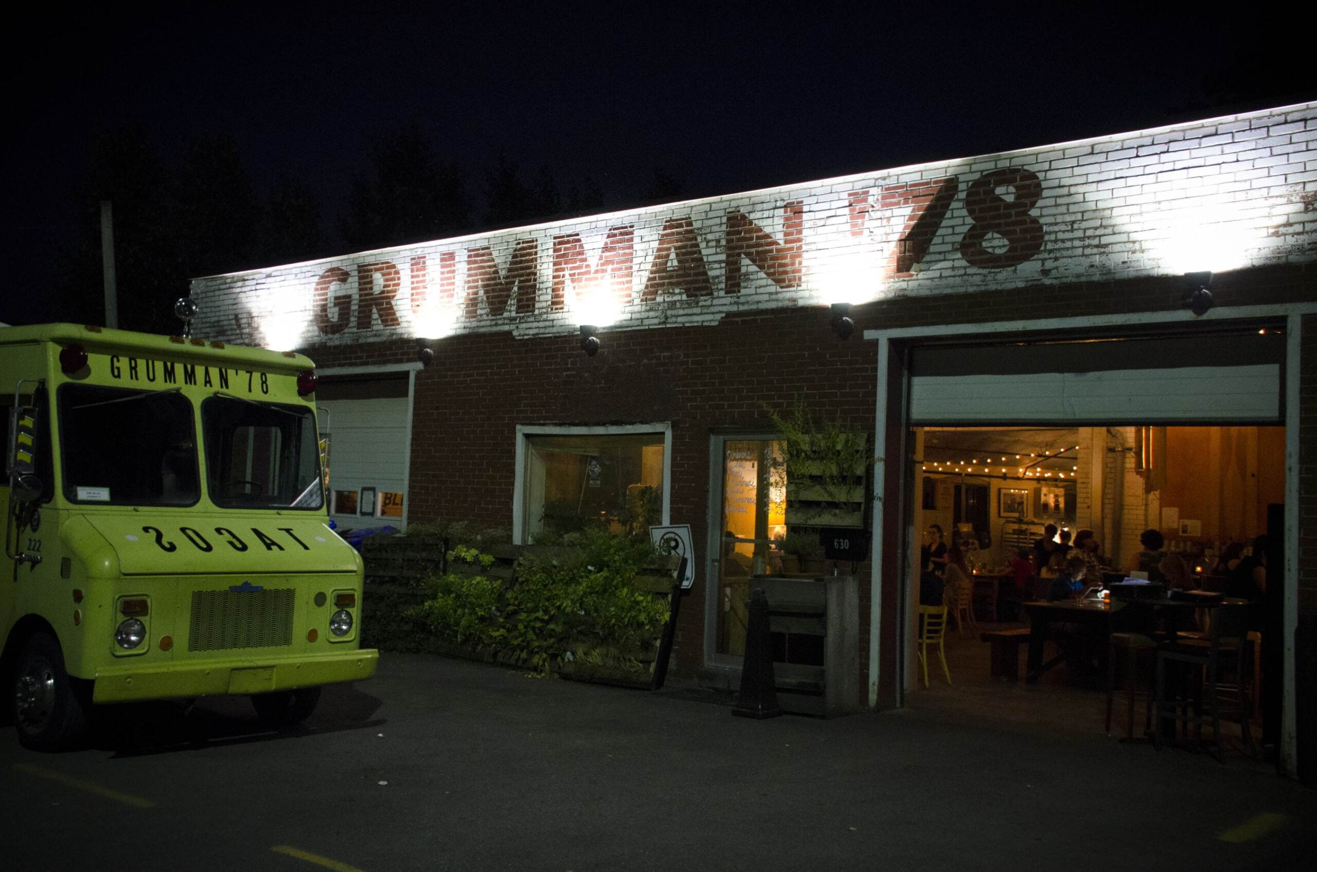 Aussi, depuis septembre 2012, Grumman 78 a son restaurant en bonne et due forme, le quartier général Grumman 78. Celui-ci est situé dans un garage désaffecté bordé par un chemin de fer. Des plats éclectiques sont servis dans un endroit éclectique.