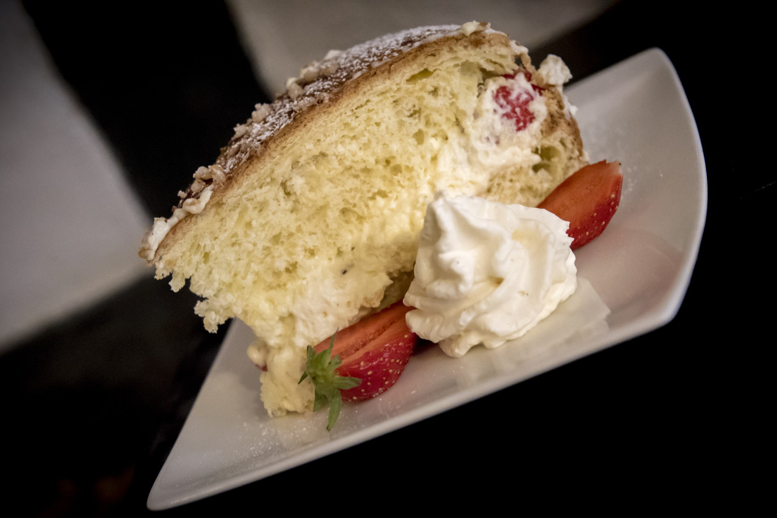 Pour dessert, un gâteau aux fraises. Celui-ci est surprenamment croquant! Sa texture me rappelle celle d’un excellent croissant. Le gâteau n’est pas trop sucré – ce qui est, pour ma part, gage d’attention au détail – et la portion est très généreuse.