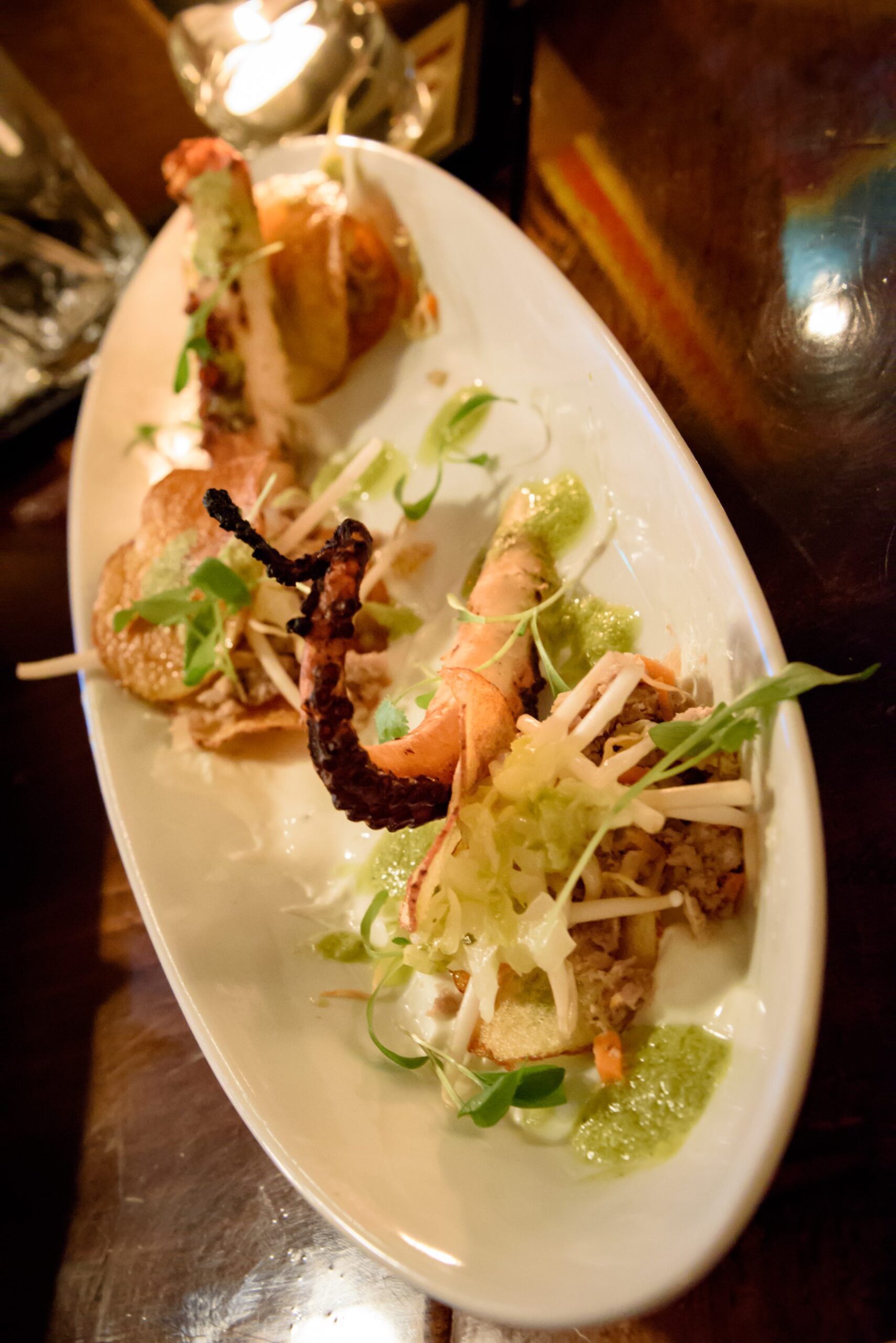 Mon plat préféré: l’os à moelle! Le goût est riche et délicat, aucun arrière-goût, parfaitement crémeux. J’ai aussi bien aimé leur « tonkinoise » – fruits de mer, bouillon de lapin – qui n’a rien d’une soupe tonkinoise, mais qui est délicieuse, peu importe le nom qu’on lui donne.