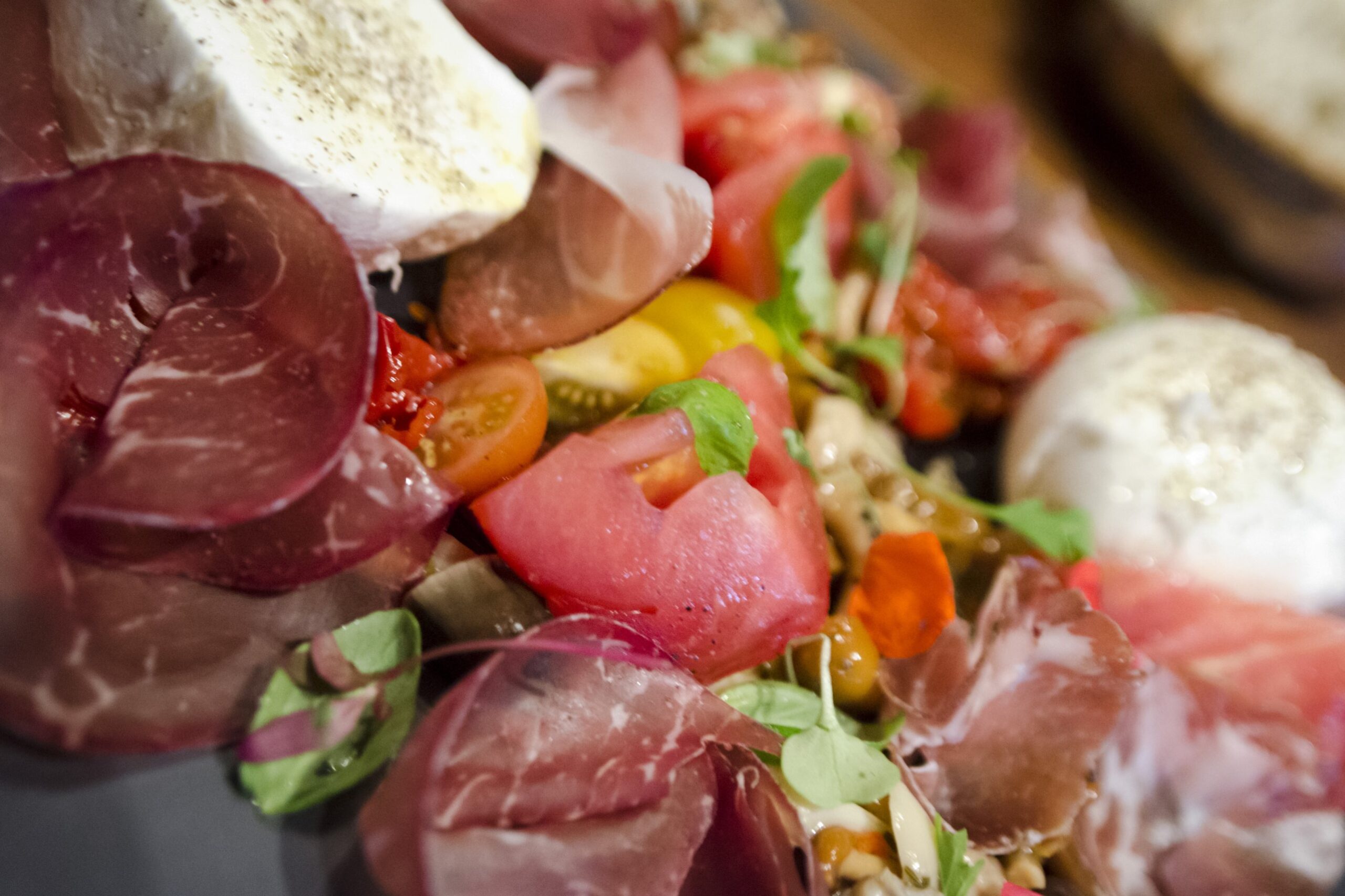 Le restaurant Vieux-Montréal: Mangiafoco est également un « bar à mozzarella ». Il ne faut pas se méprendre, il ne s’agit pas de la mozzarella râpée ou fondue qui se retrouve sur les pizzas des casse-croûte québécois, mais bien de la mozzarelle fraîche, en boule, crémeuse, molle et douce. « On offre le choix entre quatre type de fromage: la bufala traditionnelle (mozzarella au lait de bufflonne, NDLA); la bufala fumée; une bufala aux truffes et la burratina, qui est une mozzarella farcie à la crème. Tous ces produits viennent directement d’Italie. On reçoit deux arrivages par semaine. C’est très authentique. » Puis, le client choisit des à-côtés: légumes frais ou marinés et charcuteries. Le tout est accompagné de pain frais, d’huile d’olive et de vinaigre balsamique, et le plat est à partager entre tous les convives. « On crée des assiettes qui l’on pose au milieu de la table, dit M. Tremblay. C’est super convivial. C’est abordable et cela prend bien avec une bonne bouteille de vin! »