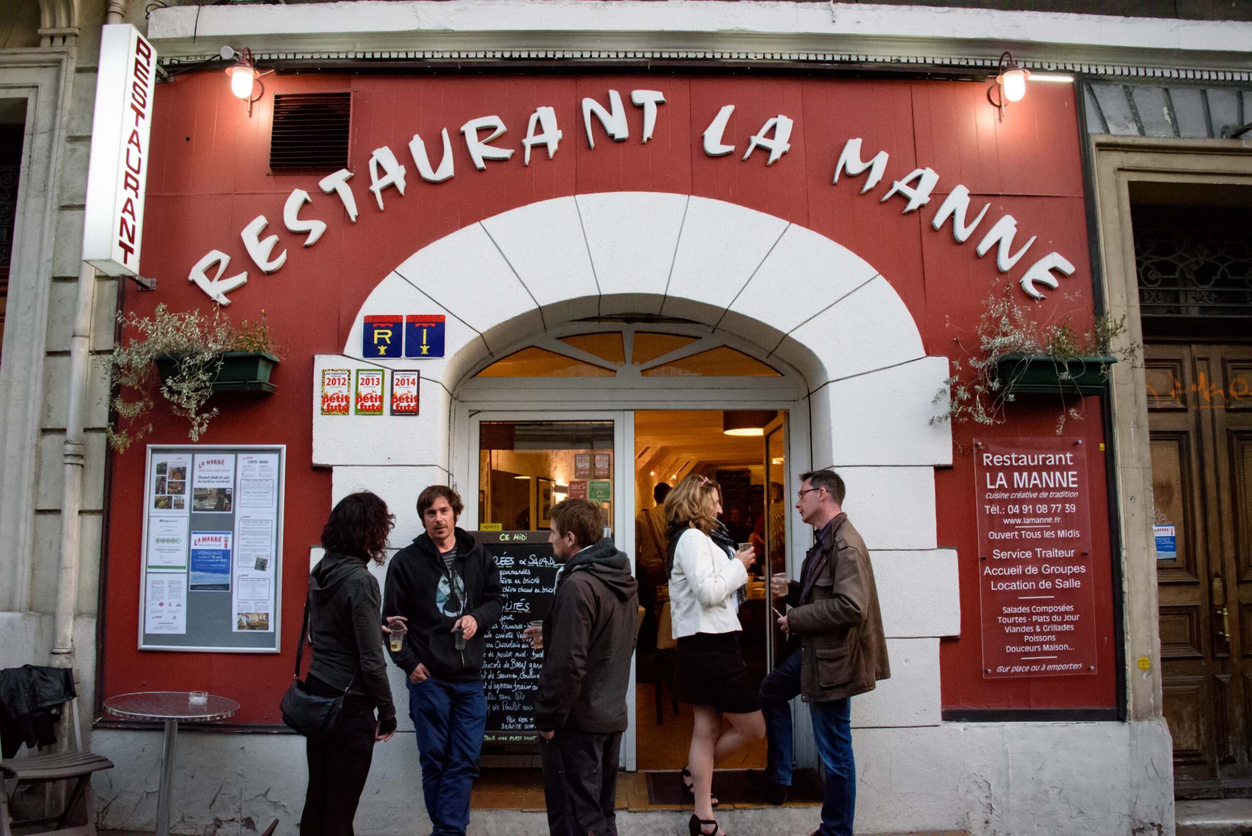 En plus de venir prendre un verre avec les hôtes aimables, bien manger pour pas trop cher, il faut se rappeler que la Manne est à deux pas de la gare Saint-Charles. Alors les voyageurs en transit qui veulent luncher rapidement avant de prendre le train savent maintenant où aller!