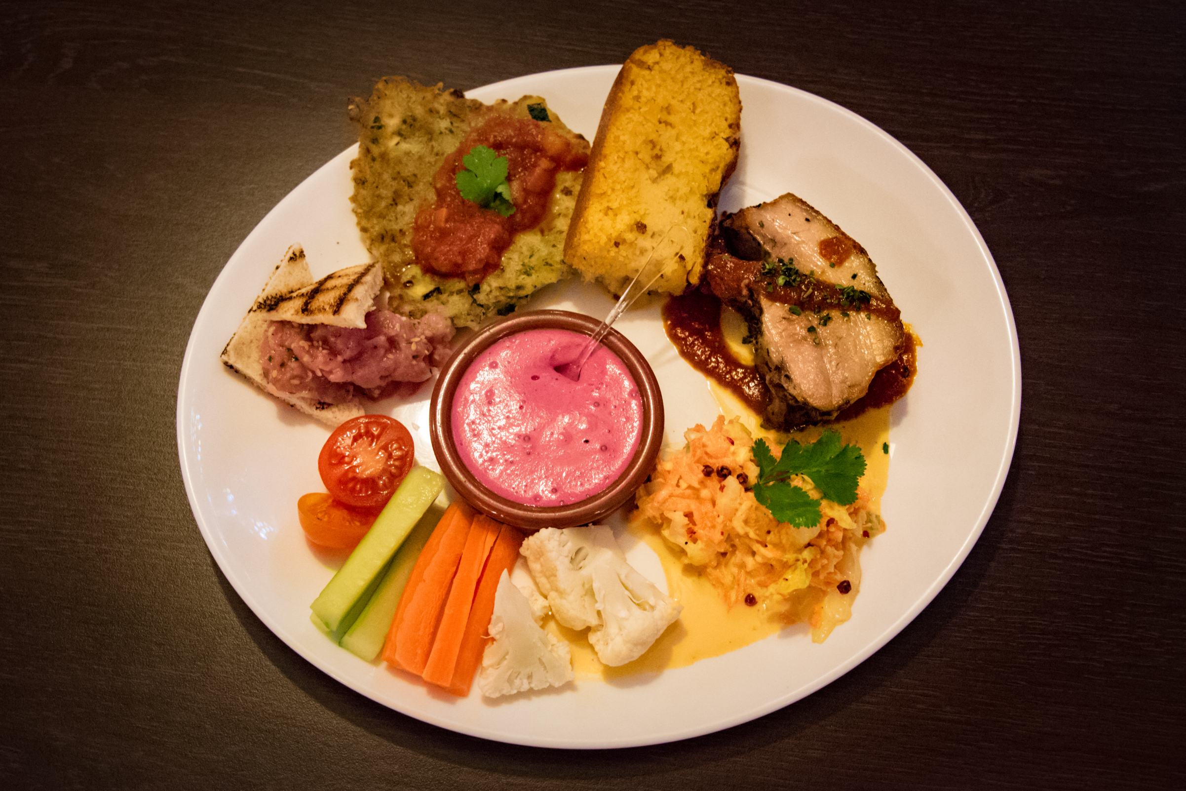 Le chef, Ivan Robert, se laisse aller dans les inspirations du moment. Évidemment, la Manne, restaurant de cuisine française, y est donc franchement ancré, mais lors de notre passage, des côtes de porc à l’américaine faisaient partie des petites bouchées de type tapas disponibles. Et puis pourquoi pas? Il s’agit avant tout de cuisine sans prétention: la Manne offre des plats qu’on reconnait, avec des ingrédients qu’on connait, dans une ambiance simple et bon enfant.