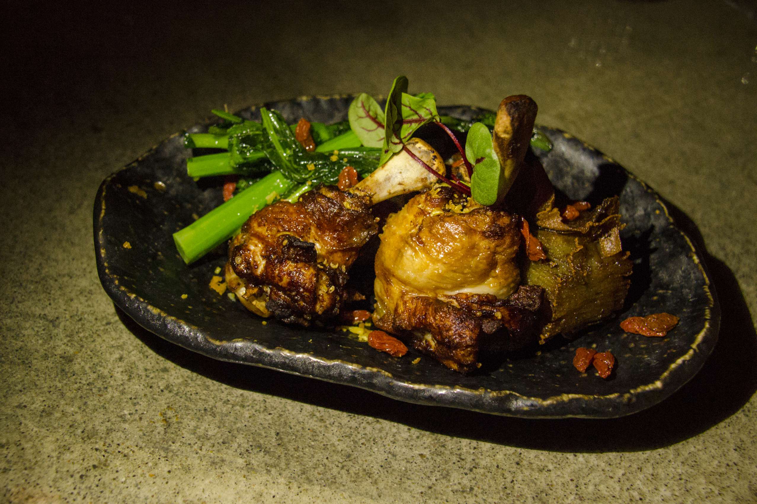 Mais ce n’est pas tout: « On fait nos propres charcuteries, nos propres saucisses – une de pieuvre et une de porc –, on commande des animaux directement de l’abattoir et on fait notre propre boucherie, on fait nos propres légumes marinés, et on fait notre propre kimchi. » C’est David Schmidt (Maïs, Mal Nécessaire), copropriétaire du resto, qui explique. « On utilise des produits locaux, entre autres du bœuf Wagyu et du porc Berkshire d’ici. »