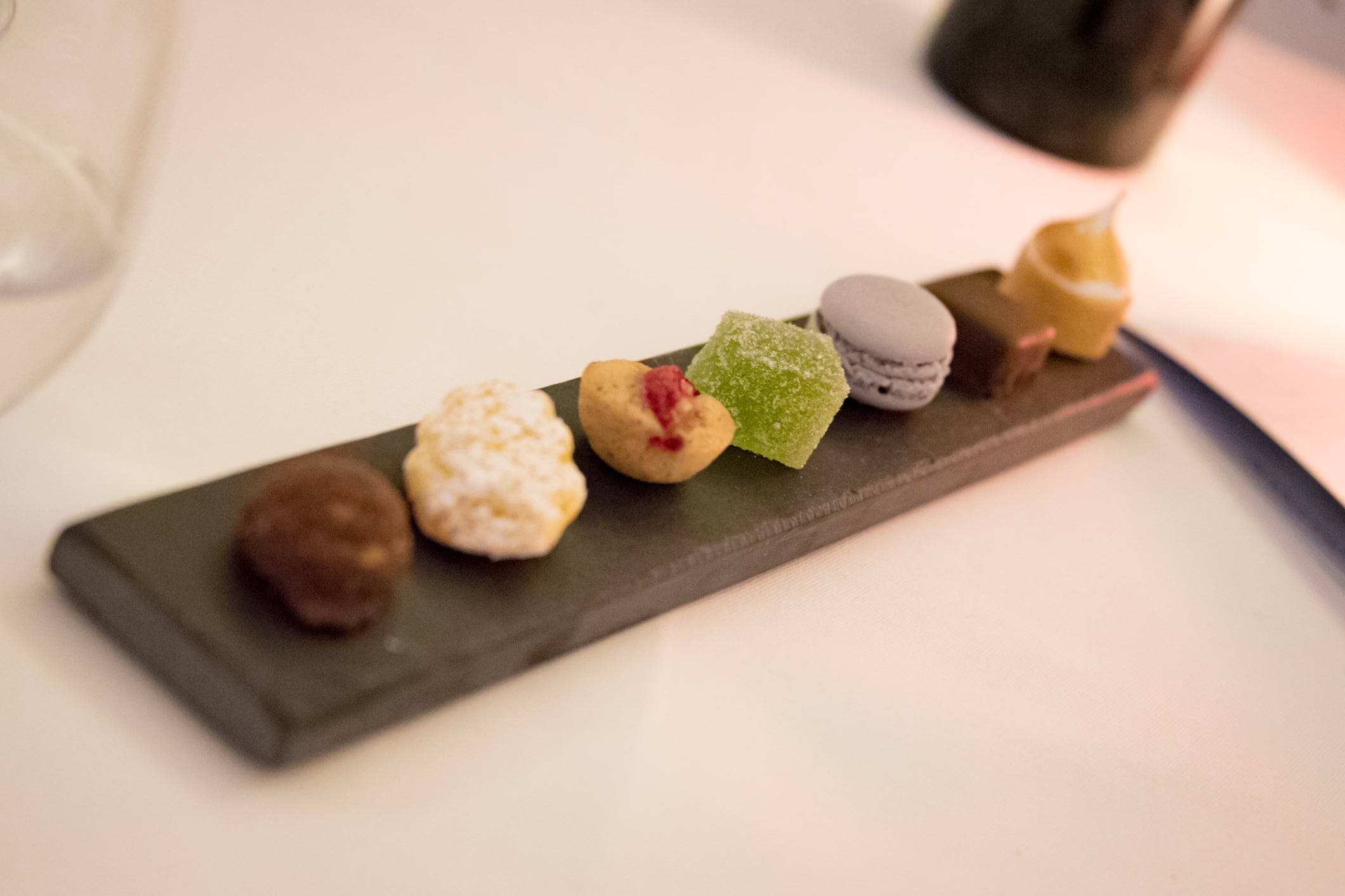 Environ une heure après le début du repas, j’ai remarqué que le restaurant peut être un peu bruyant, relativement parlant. Mais des enceintes soigneusement placées au plafond autour des tables créent des murs acoustiques, séparant chaque table et fournissant un faux sentiment d’intimité. Cette ingéniosité est remarquable, surtout après mon expérience presqu’ecclésiastique au restaurant La Pergola.