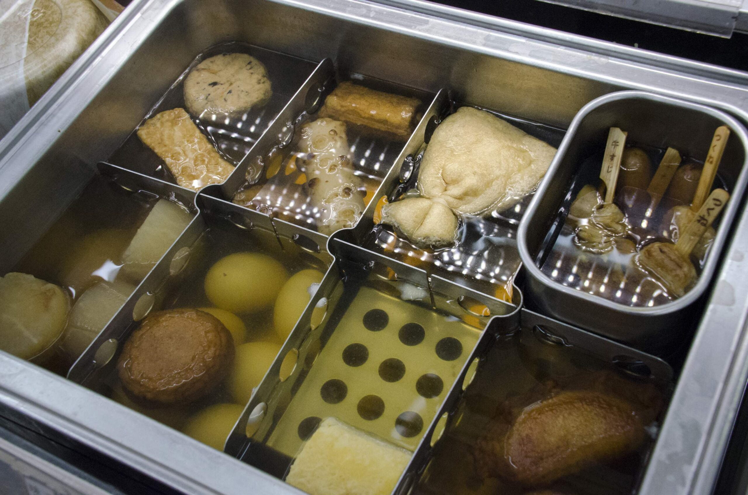 There are hundreds of Lawson convenience stores in Tokyo and, believe it or not, the food sold there isn’t horrendous (like, say, in the US…) Rice takes the spotlight: rice shapes, in ball or triangle form, are stuffed in different ways and covered with a sheet of nori. In order to keep the seaweed leaf crisp, it is individually wrapped. You have to unpack the package yourself and repack your rice in the nori! Bentos (lunch boxes with many interesting bites) are also on sale and freshly prepared.
