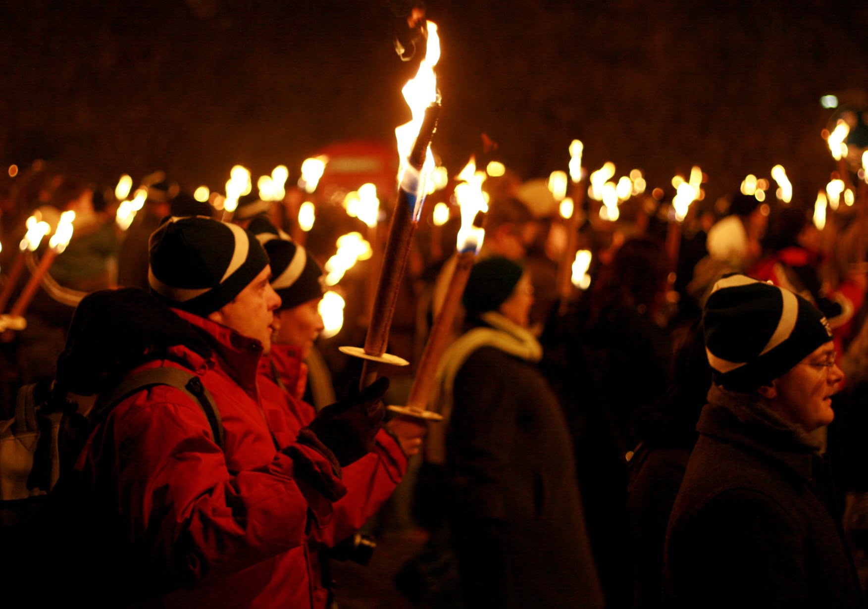 In Scotland, the Hogamanay Festival is celebrated on December 31 each year. The party lasts until January 2, which is also a holiday. On the 31st, a long torchlight march is organized in the center of the Scottish city. Tens of thousands of marchers light torches and walk to the national monument, where fireworks can be seen when the walkers arrive. Then, a “Street Party” is organized, which is actually a big music festival in the streets of the city. Then, the bravest, to honor the tradition, jump in the freezing waters of the river!
