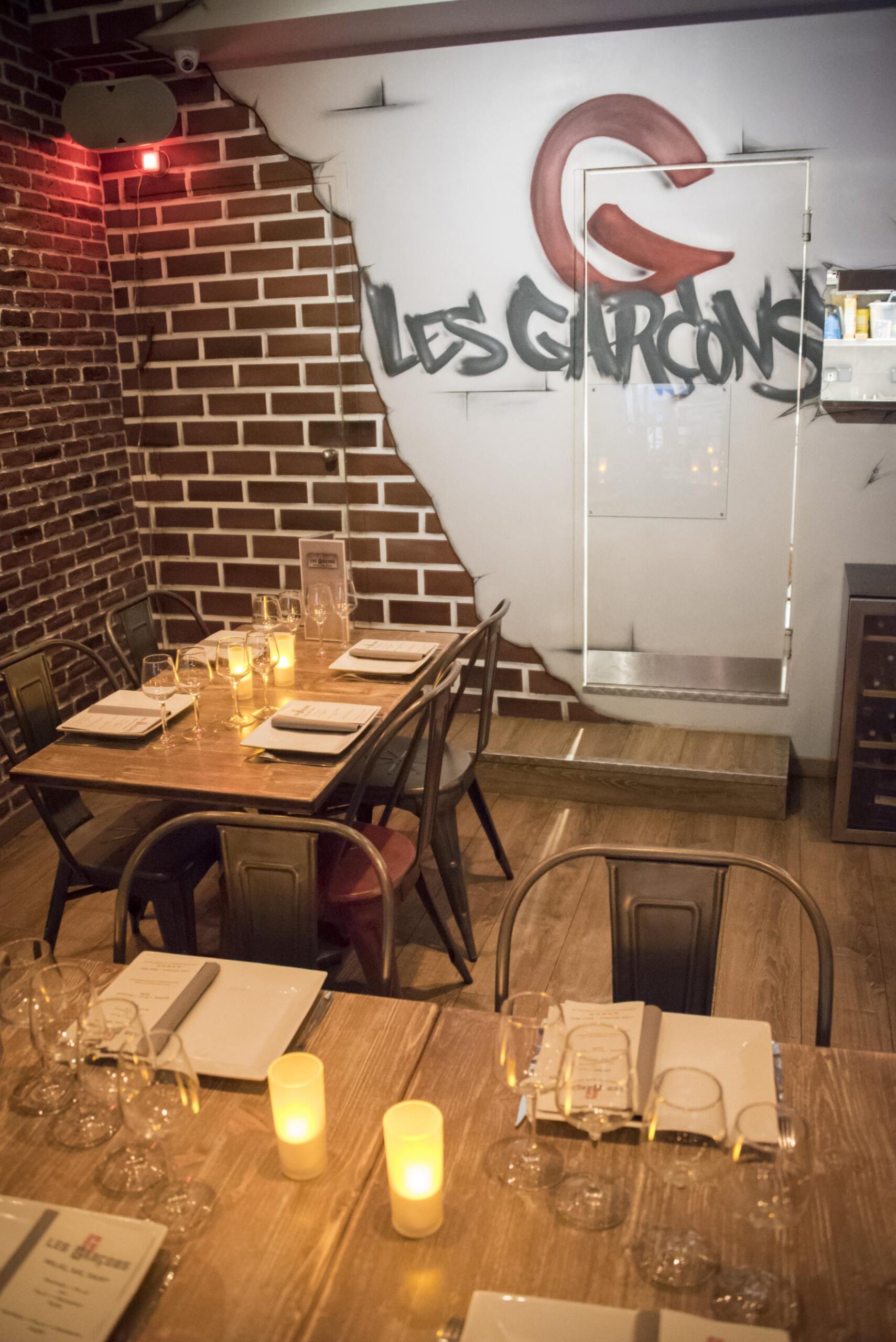 Nice, France – When entering Les Garçons, in Nice, we are faced with a set that surprises, at first glance. A brick wall, a false brick tapestry coupled with wallpapers replicating steel, stained metal chairs, some smeared with paint … is this a club? A Supperclub? Then on the menu, we find a few bistro classics, like duck breast, and a few fusions that bring a different flavor, like the Moroccan burger, and other Provencale classics, like aumônières de lapin.