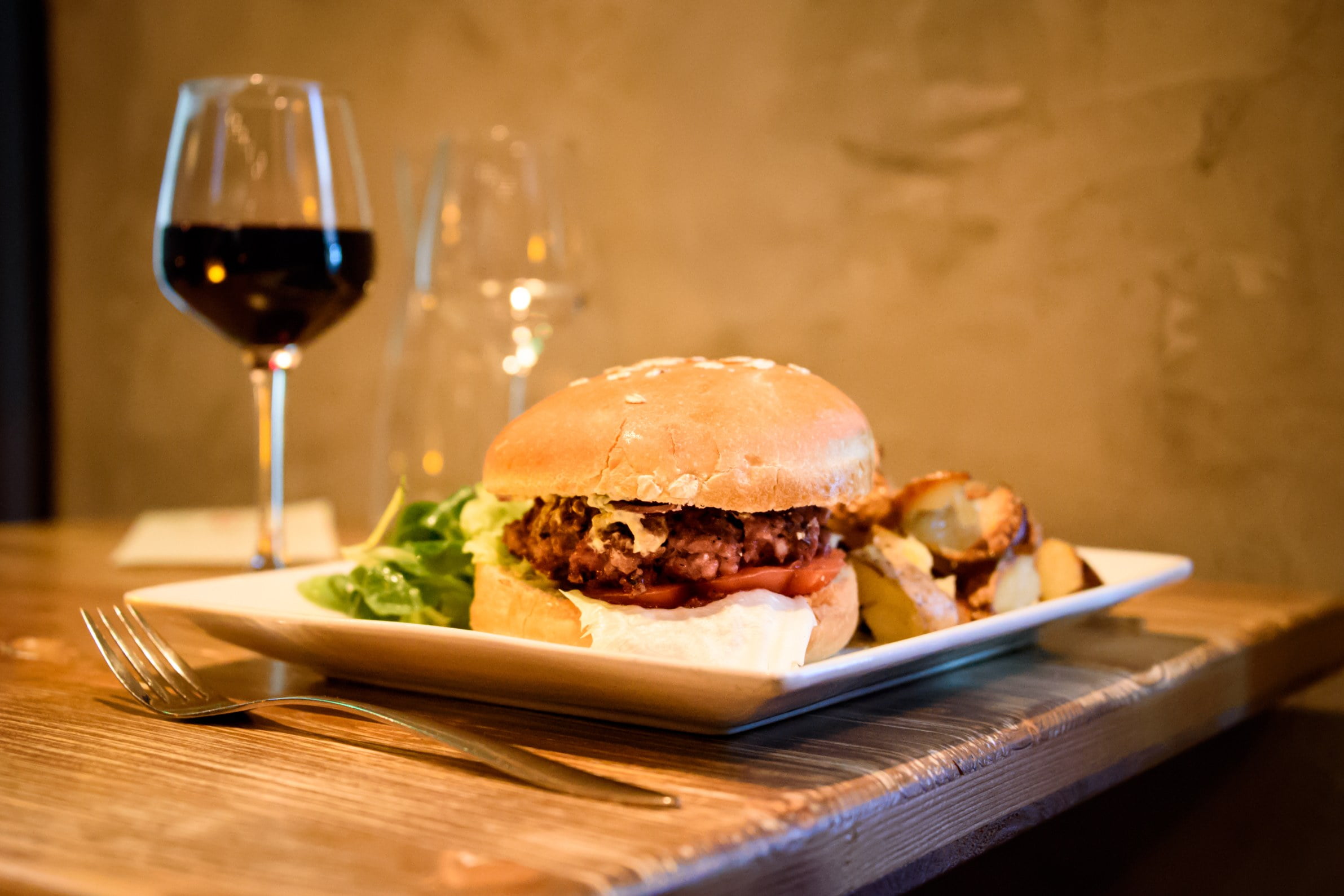With the burger comes a glass of red: 2013, Pic Saint-Loup, La Grange Thieri.