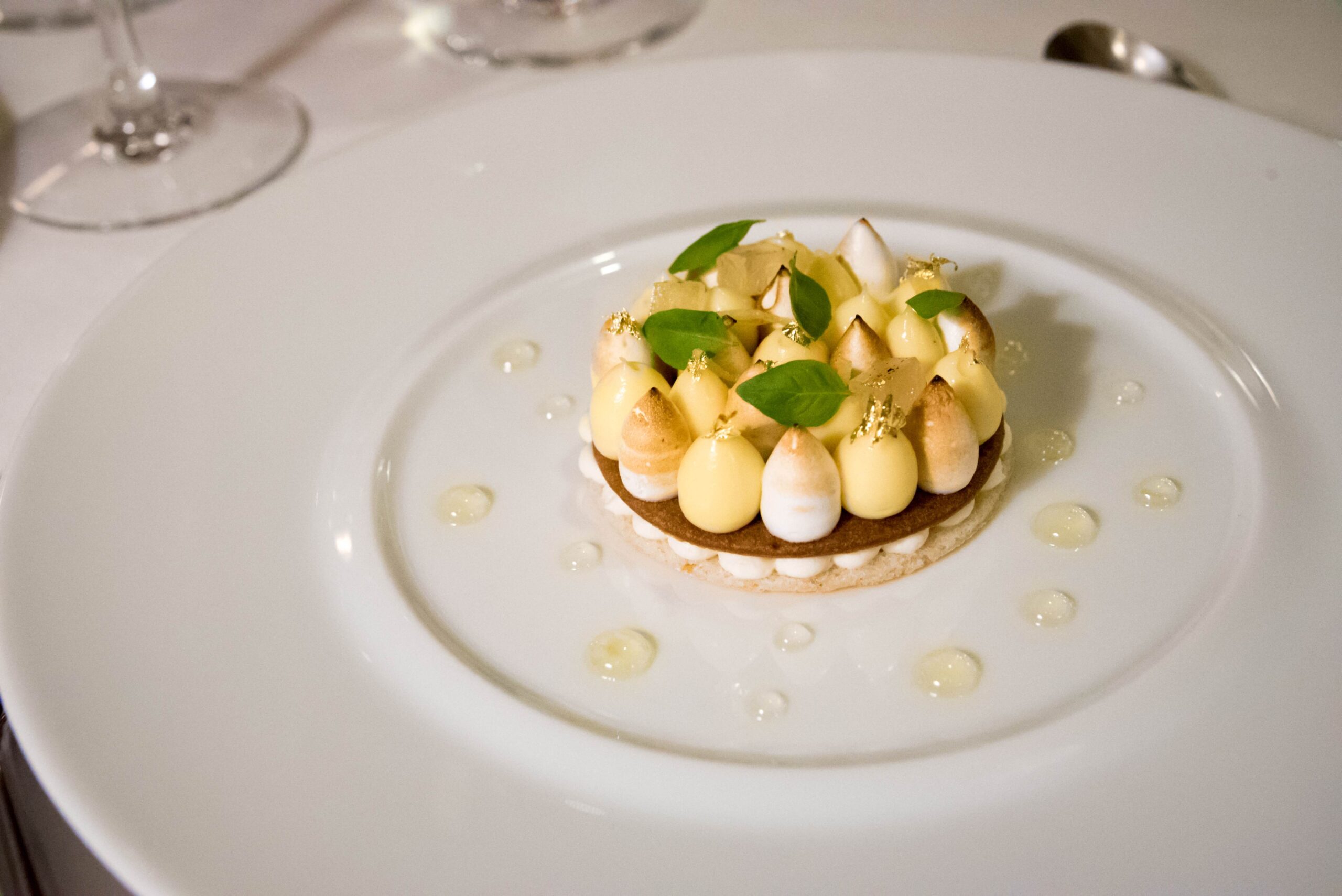 Favourites: the scallop carpaccio with radishes is a strikingly elegant and colourful plate; the pigeon breast is paired with a “cabbage cake” and a thick blackened reduction; the lemon meringue pie is “pimped” with edible gold.